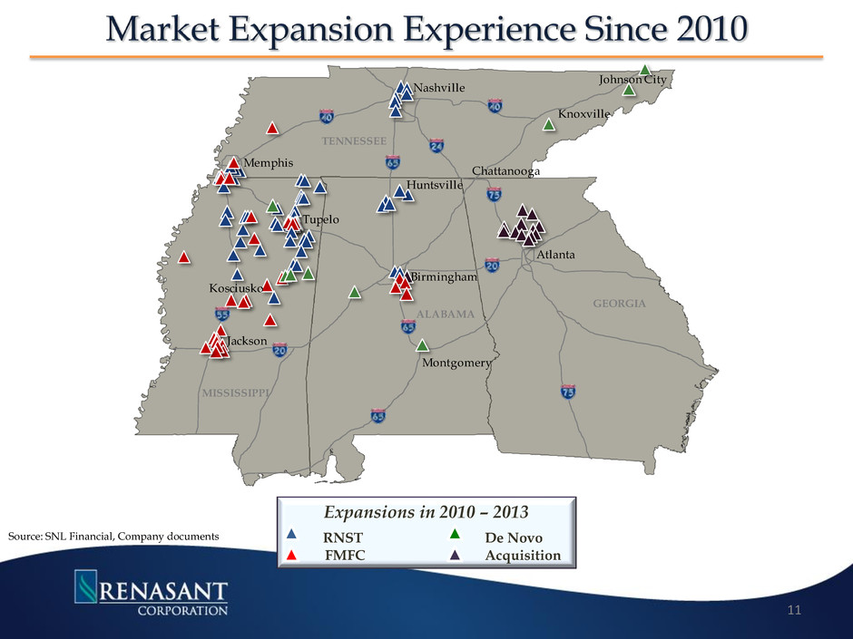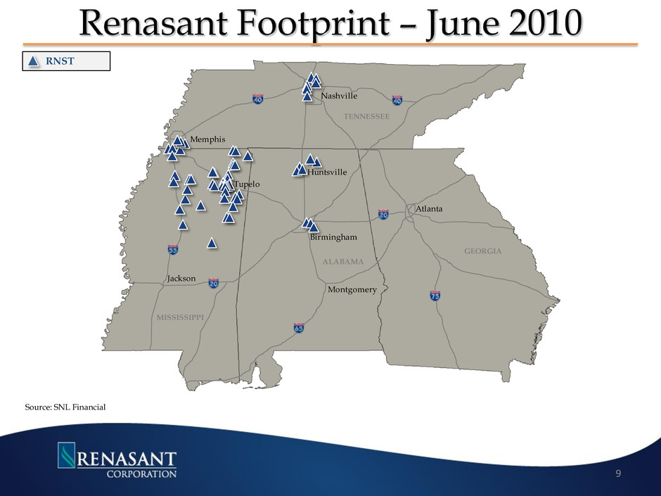 RNST Nashville Memphis TENNESSEE Tupelo Jackson MISSISSIPPI Birmingham Huntsville Montgomery Atlanta GEORGIA ALABAMA Source: SNL Financial 9