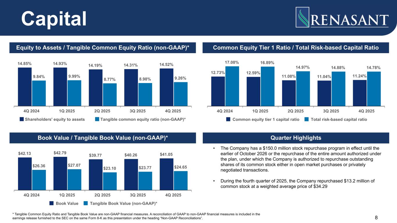 TUPELO, MISSISSIPPI (January 27, 2026) - Renasant Corporation (NYSE: RNST) (the “Company”) today announced earnings results for the fourth quarter of 2025.