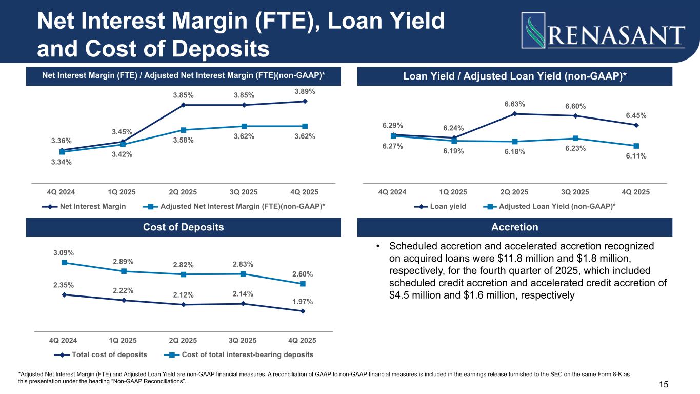 •For the fourth quarter of 2025, net interest margin was 3.89%, up 4 basis points linked quarter. Adjusted net interest margin (non-GAAP)(1) was flat at 3.62%